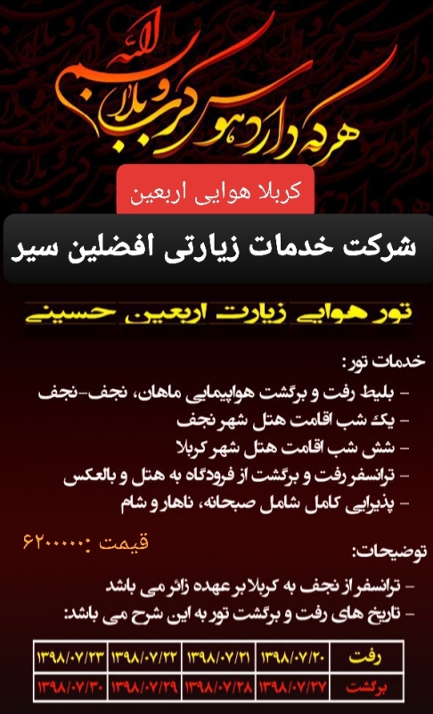برچسبها: تور کربلا هوایی, تور کربلا آذر ماه, تور, کربلا